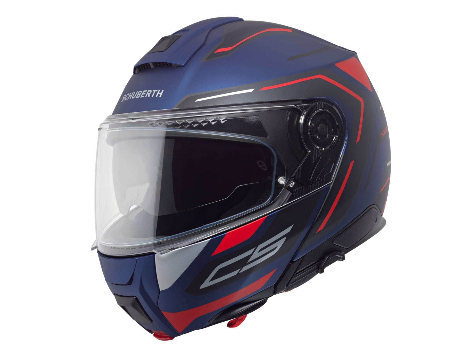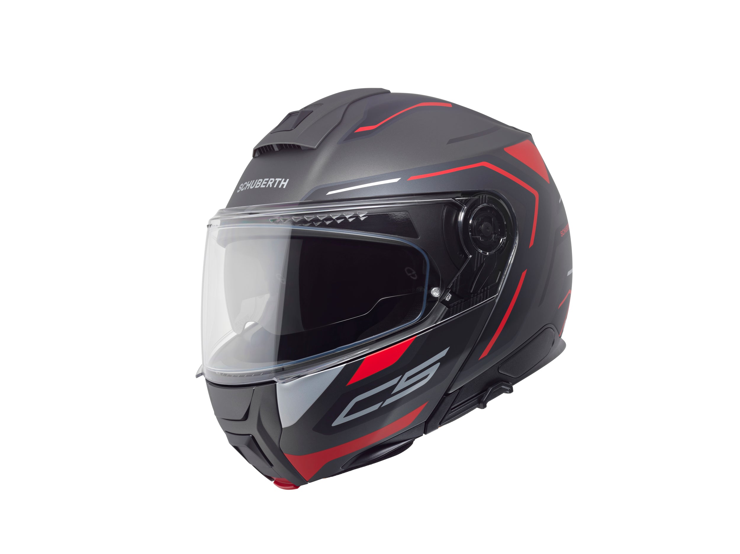 The SCHUBERTH C5 represents the new era of flip up helmets and the result of 20,000 engineering hours, of 2000 tested helmets in SCHUBERTH's environmental lab and wind tunnel, and more than 400 hours of test rides on German roads.