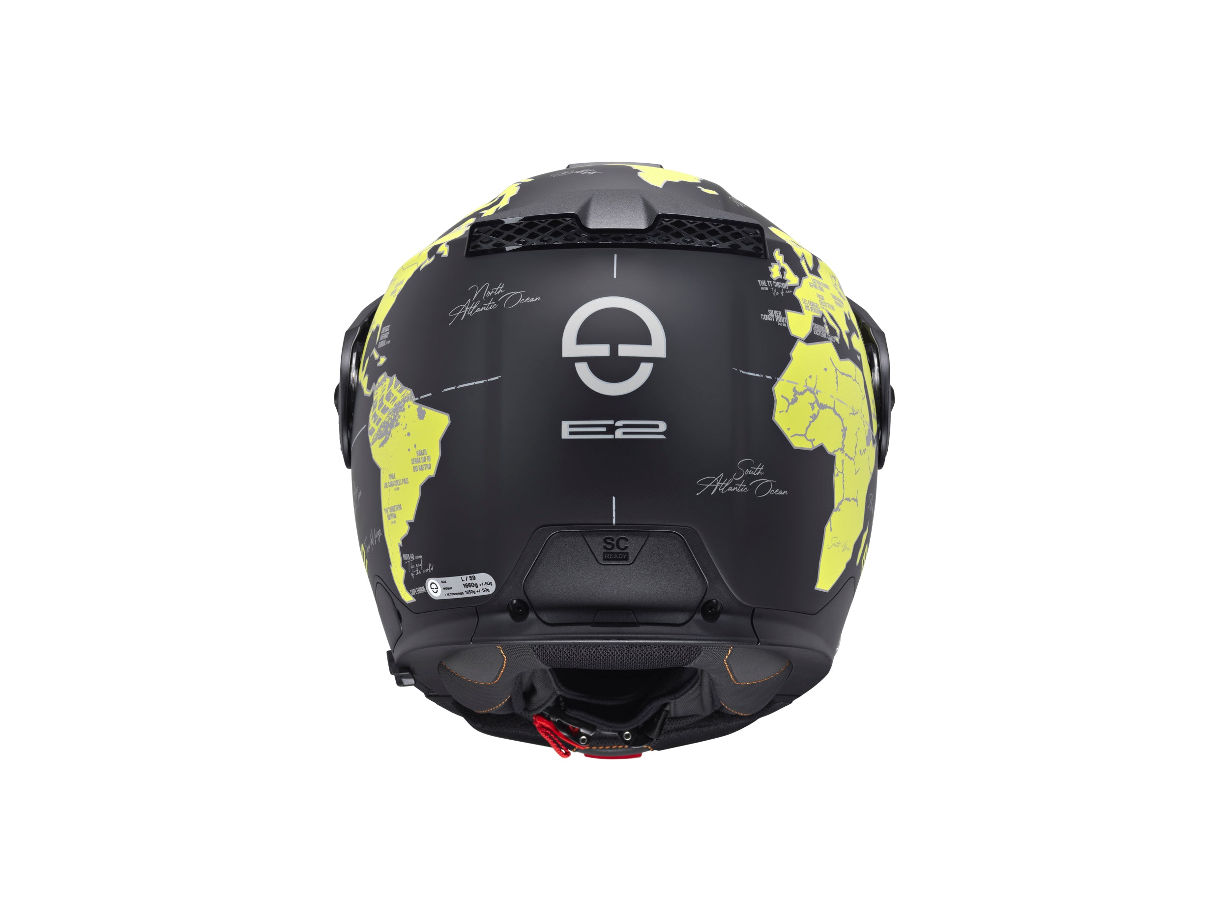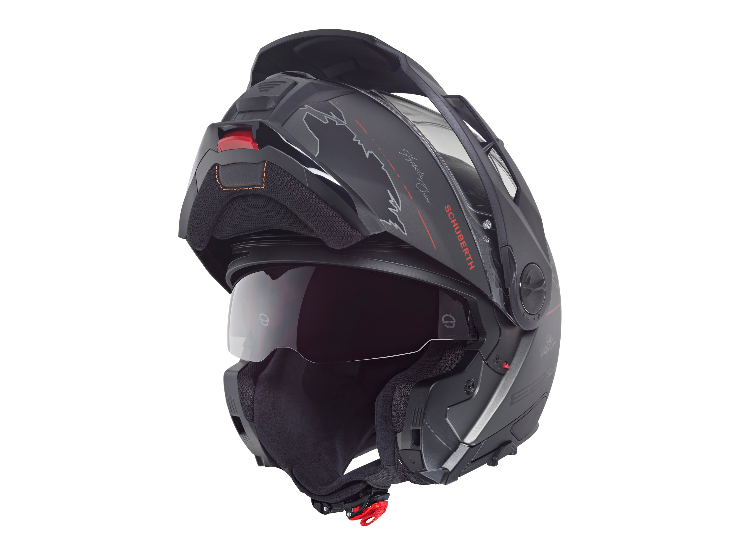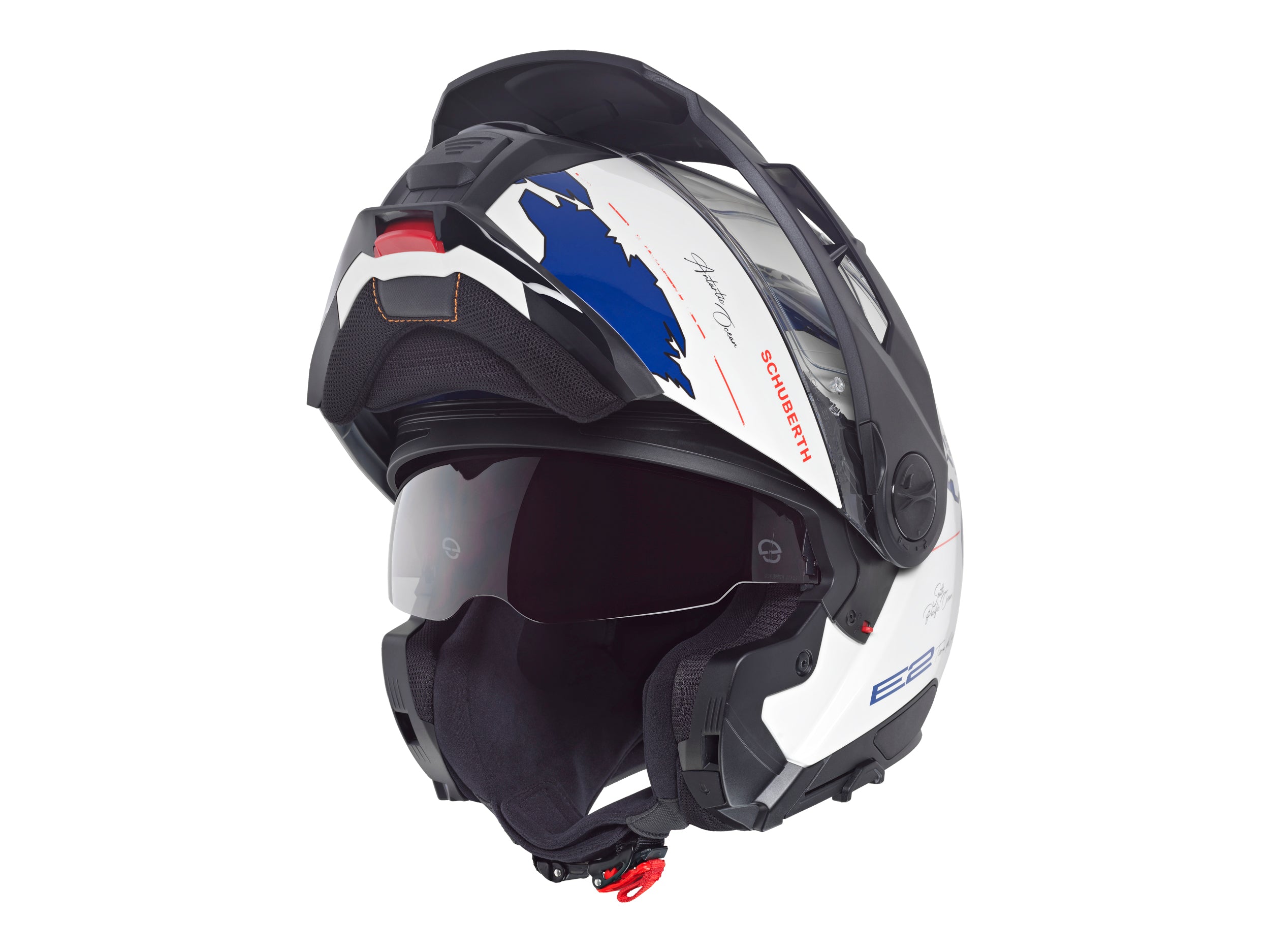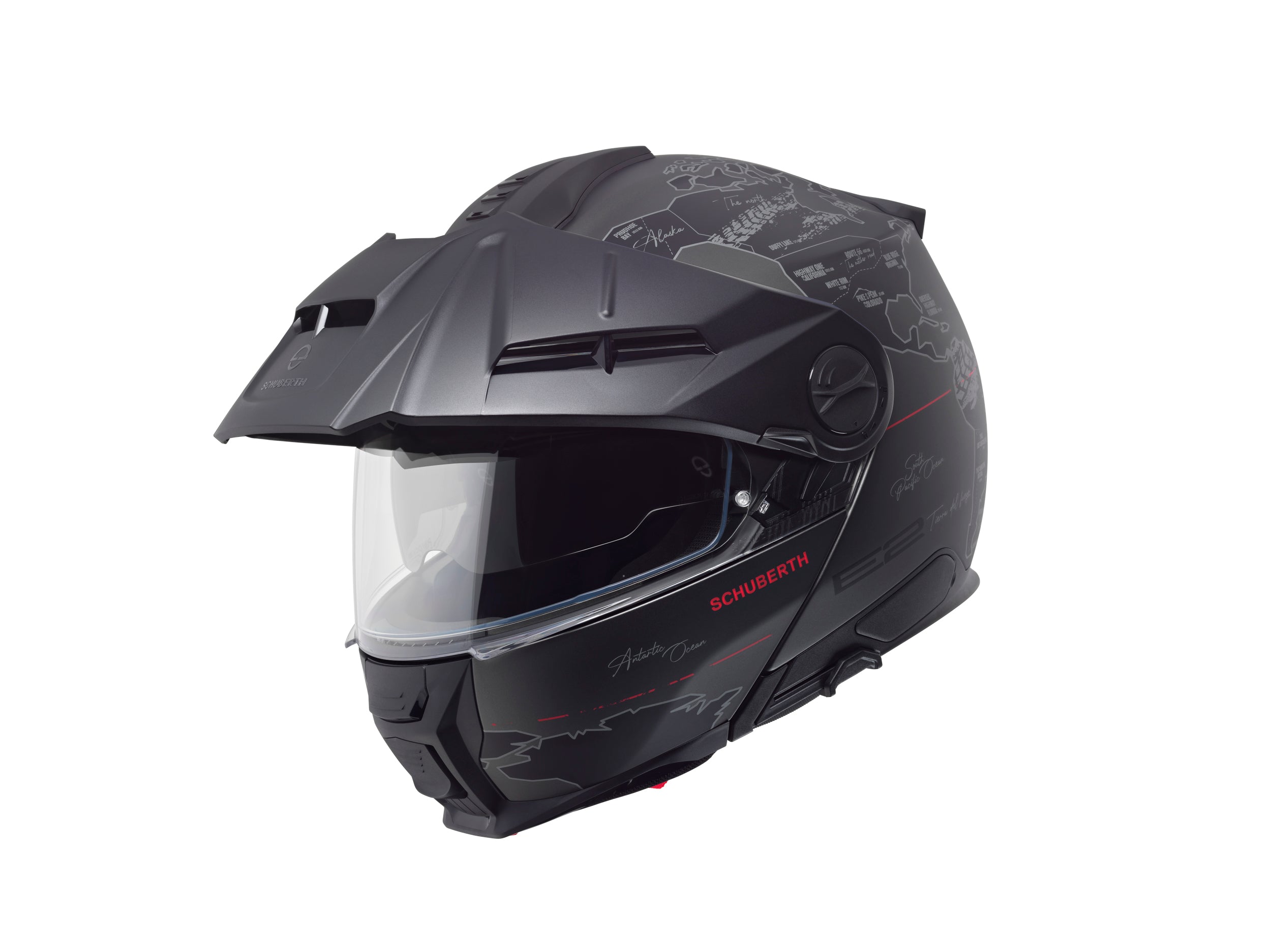 The SCHUBERTH E2 is the second generation of SCHUBERTH's adventure helmets and the second helmet of SCHUBERTH's range featuring locking mechanism to hold the chin bar up. The SCHUBERTH E2 is the perfect mix between the comfort of the famous Flip Up "C" series and the aggressive look and feel of an off-road helmet. The customizable interior padding offers a perfect fit to all the customers, putting this adventure helmet on another level, ready to rock the dustiest trails.