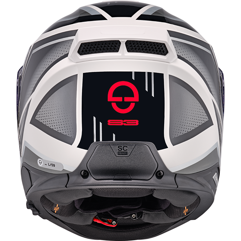 • S.R.S (SCHUBERTH RESCUE SYSTEM): in case of an accident the cheek pads can be released by the rescuers, reducing the forces on the rider’s neck and facilitating the removal of the helmet
