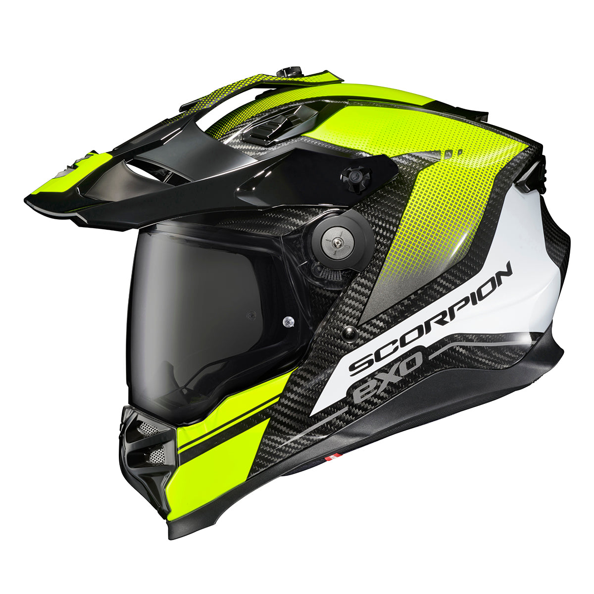The Peak Visor’s aerodynamics were designed to help keep buffeting and lift to a minimum when riding at high speeds. And if the highway is your primary terrain, or if you’re riding away from the sun, the peak visor can be easily removed to allow an even more streamline aerodynamic profile. When your adventures take you off-road where goggles are preferred, the face shield features a tool-less system allowing you to easily and quickly swap your shield for goggles. The wide eye port allows for greater peripheral vision and accommodates most sizes and brands of goggles. Another unique feature only seen in ScorpionEXO helmets is the Airfit® liner inflation system, which allows you to customize the fit of your cheek pads, which also helps significantly reduce wind noise, buffeting and lift.