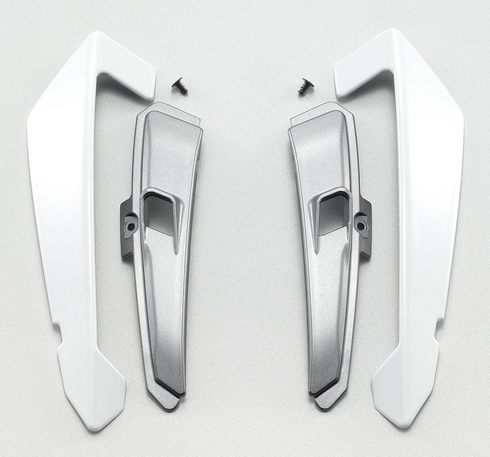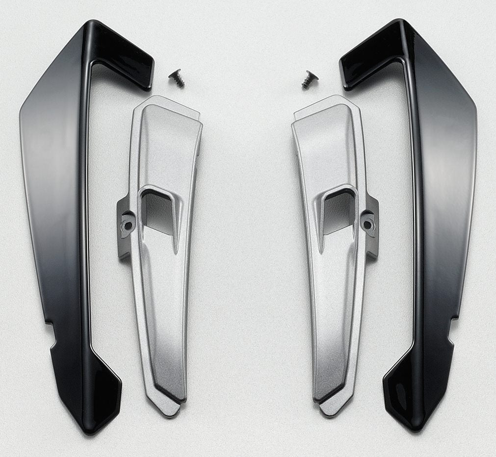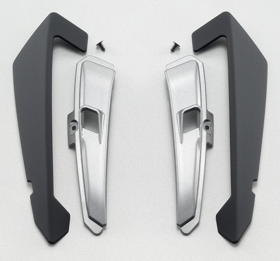 Refresh your SHOEI X-Fifteen helmet with the easy-to-install replacement Top Air Outlet kit. Ideal for fixing worn components or customizing your helmet with a different color, this part enhances airflow, ensuring a more comfortable ride. Its cleverly engineered design efficiently removes stale air, keeping your vision clear. The kit includes two covers, two aluminum-colored inserts, two screws, and self-adhesive foil for quick and secure attachment.