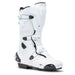 The newMAG-1 boot by Sidi is new for 2014 and compares with the similarly priced Vortice boot. I won’t kid you and pretend I’m a racer, but I’ve seen aLOTof boots, so I’ll give you my anecdotal reaction to this new model. The key things are: lighter, simpler (at least visually), less bulky shape and easier to use (put on, take off and adjust). To me, this boot is easier to work with than the Vortice and even the lesser-priced ST boots. The “Tecno-3” system, which is the three adjustable cable/post setups on the boot, has been improved from the Vortice and is easier to work with. They’ve incorporated little magnets into the loop part which holds those little guys in place while you wrangle with the actual adjusters. Before, it was a two handed process and sometimes the little wire would jump out of position while you tried to tighten it up, so I really like that enhancement. Also, there seems to be a bigger range of adjustment. Sidi advertises that these boots will handle a 15” calf, and I can confirm that because my calf is 16” and I had no problems and seemed to have even more adjustment room to spare. Up on the calf area, one side is adjustable every time you put the boot on and on the inside of the leg, there is a fixed rubber/plastic strap that is adjusted once and then left alone (if you get it right). Getting in and out isREALLYeasy. When you disengage the three wires, the boot lays completely open… no high arch problem here for sure. Other Sidi race styles have armored hinge pieces on the outside of the boot, but this boot has thin fiberglass strips built in between the boots’ outer and the lining inside. You can feel those in there, but you can’t see them from the outside. These pieces are there to provide side to side stiffness but allow front to back movement. I don’t personally think these side pieces will provide the level of mechanical stiffness of the Vortice, but I’m told that Sidi engineers think the lower profile and lighter weight are the preferred tradeoff in this new design. Maybe we are backing off the Robocop design of race boots? Perhaps so. Tail fins on the ‘59 Cadillac were cut way down in 1960, right? So the overall loss of “contraption” on the boots cuts the weight and cuts the bulk. The boot does feel noticeably lighter and the shape and fit are more pleasing to me. A couple other little things I liked: The toe sliders have little vents on them, which really seem to work. When I blow in them, the air comes right into the boot. Now the little plastic on/off slider is a bit fussy depending upon how you have your slider adjusted, but beyond that, it is a great idea for venting a boot like this. The other thing that looks new and is a good idea is the bright red piece of rubberized material in the rear top. It protects your calf from being rubbed by the harder plastic support in back. Looks cool/works good. There are aLOTof detailed features here that are technical and safely related, and of course I’m not covering all that stuff here, but my impression from the perspective of functionality, fit and ease of use all look like steps forward in design. I like them. :: Paul, 05-27-14
