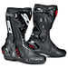 The Sidi ST Air motorcycle boots are an all new upper level sport boot, and I have to say I amREALLYimpressed.The only difference between these and the regular Sidi ST boots is the Air version is fully perforated for hot weather riding.These boots seem to have the perfect blend of protection, comfort, and convenience. The problem I find with some top level race boots is they really aren’t very practical for street riders (unless all you are doing is aggressive canyon carving, etc). Race boots tend to be very stiff, and have a lot of adjustments and closures that make them cumbersome to get on and off. The ST Air boots, in contrast, have very easy entry, yet they are held securely on your feet at the same time. This is thanks to Sidi’s exclusive cam-lock buckles, which they brought over from their very successful dirt line. These buckles are the best in the industry. They are easy to operate, stay put when closed, and are very sturdy as well. There are two buckles on these boots, one on each side of the upper, with a very large adjustment range for different sized legs. Sidi claims that the ST Air boots can accommodate up to a 15 inch calf (12.5 inches above the floor). So for those of you with large calves, these are the boots for you! The ST Air boots feature more than just fancy new buckles though. The upper portion of the boot that folds down functions as a very sturdy ankle brace (take a look at the pictures we took, you’ll see what I’m talking about). After trying these on, I was very impressed with the amount of support that they provided. A replaceable shock absorbing heel cup and toe slider are nice features for those who like to push it, and a closeable vent on the side of the boot is a nice touch, although it is kind of silly on a fully perforated boot. We have taken quite a few photos of the Sidi ST Air boots here in our studio. So be sure to click the “View Larger Images” link above to take a look!