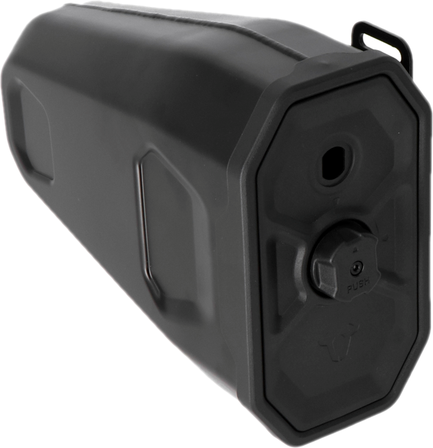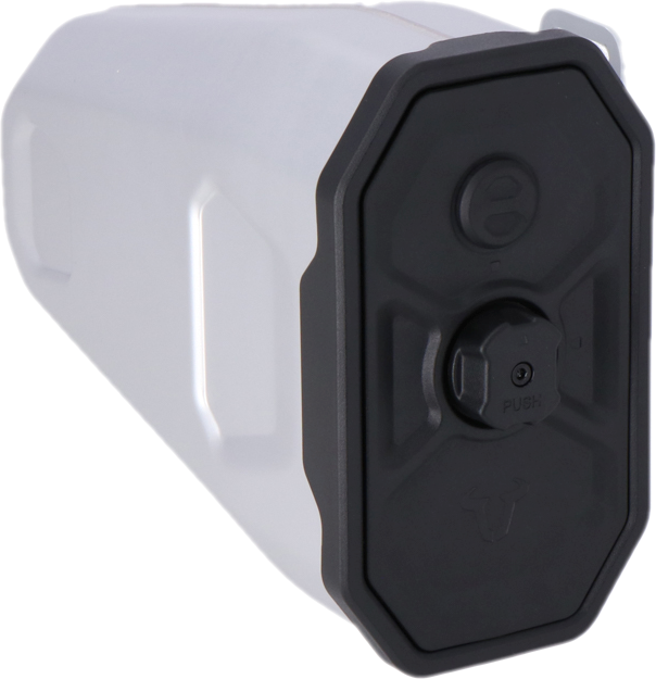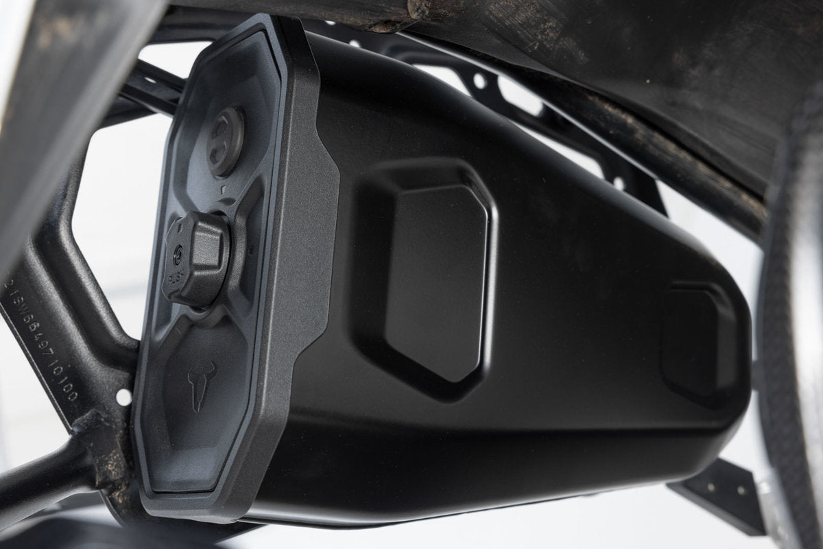 The TRAX Toolbox can be attached to the inside or outside of the PRO side carrier. The position can be custom-adjusted using the three attachment points, so the box can be placed under almost any motorcycle tail. The sealed plastic lid can be attached onto the main body via a simple twist lock.