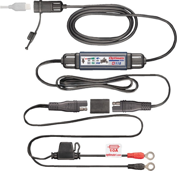 * Battery lead with M6 (1/4”) rings/eyelets (included) or 2-pin SAE connection; fits most powersport battery terminals