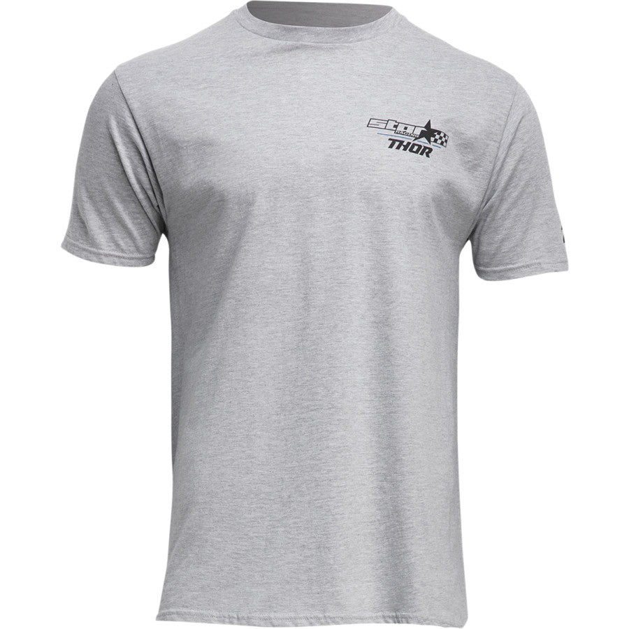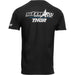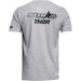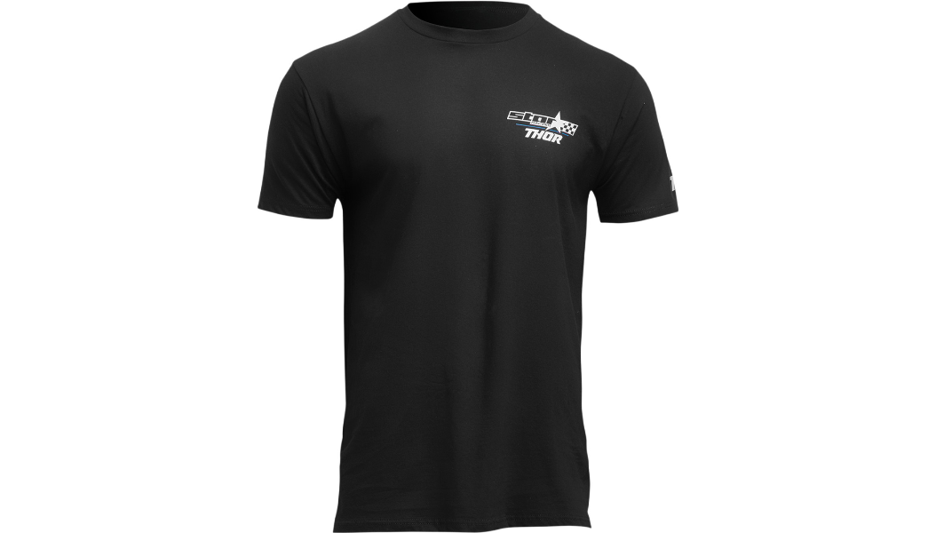 - 90% cotton, 10% polyester tee shirt with screen printed graphics on front chest and back.