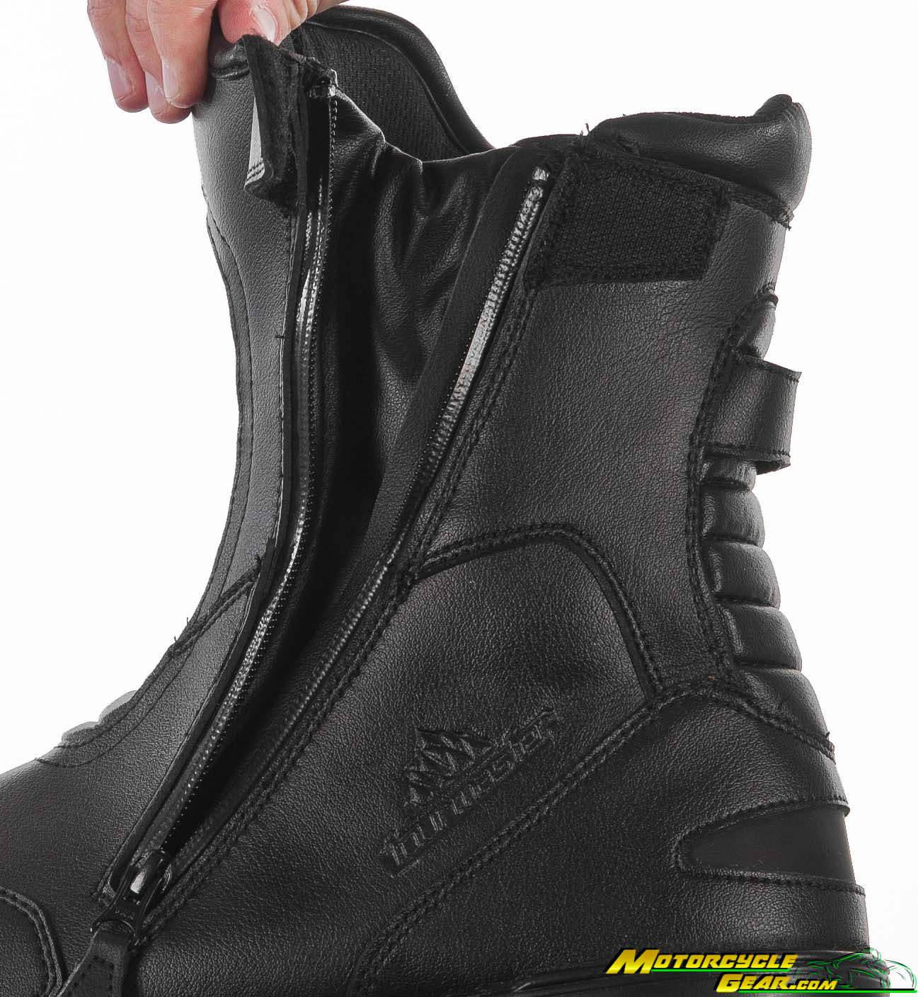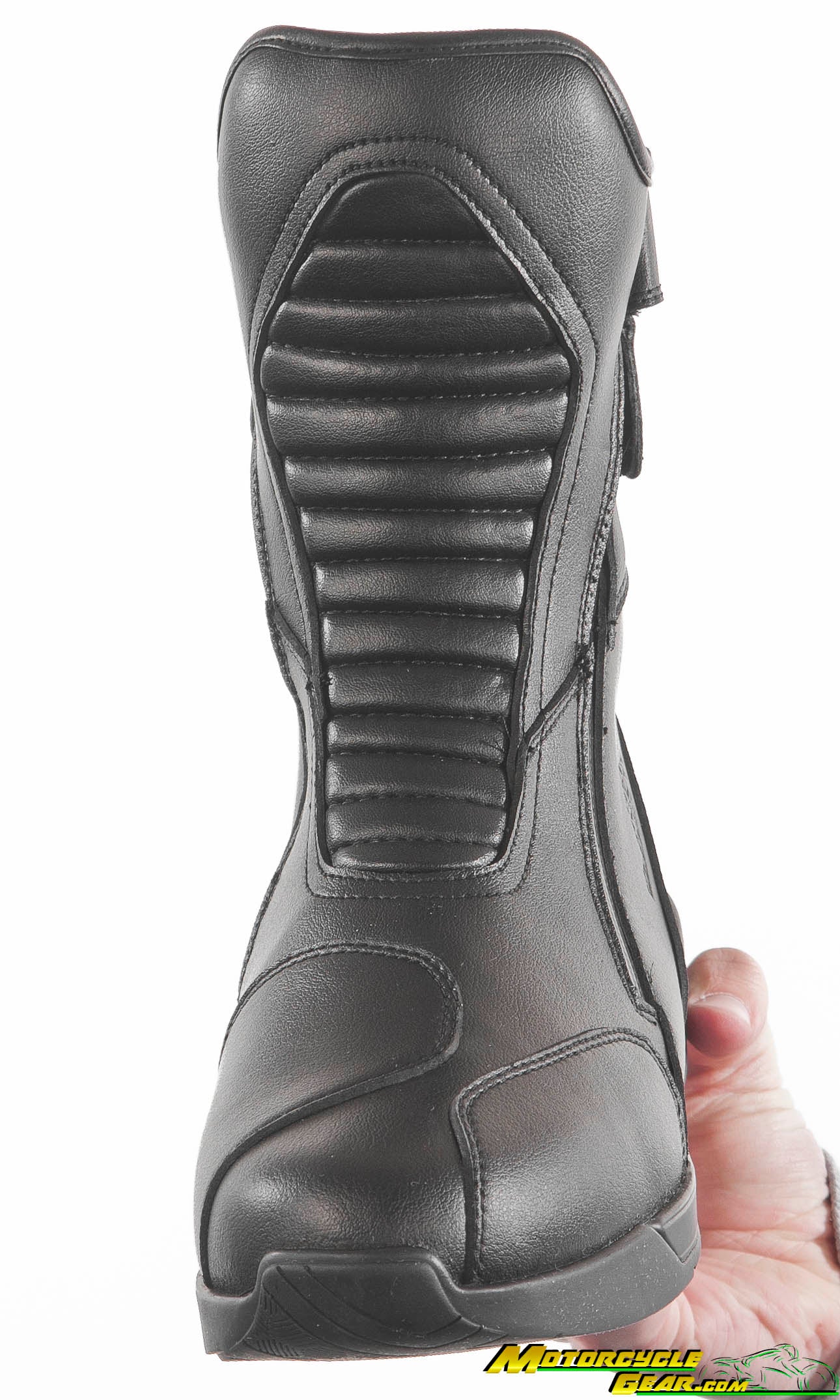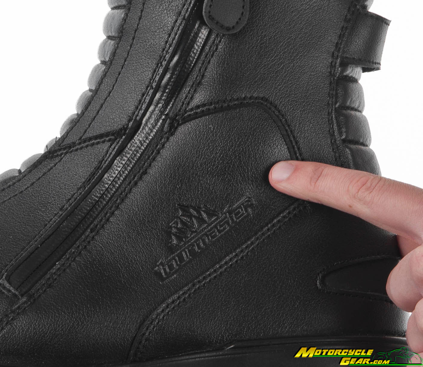 The upper on this boot is made of a black microfiber material which makes a great motorcycle boot because of the durability and its ability to resist damage from water. Most all major motorcycle footwear makers use microfiber these days. I’d recommend this boot for temps ranging from cold to warm, but since the boot is made of a solid material and also has a waterproof liner, I don’t think they’ll be too comfortable in hot summer temps. Having a waterproof liner and given the boot’s height, you should be all set for finding some rain on the road. :: Paul, 12-14-20